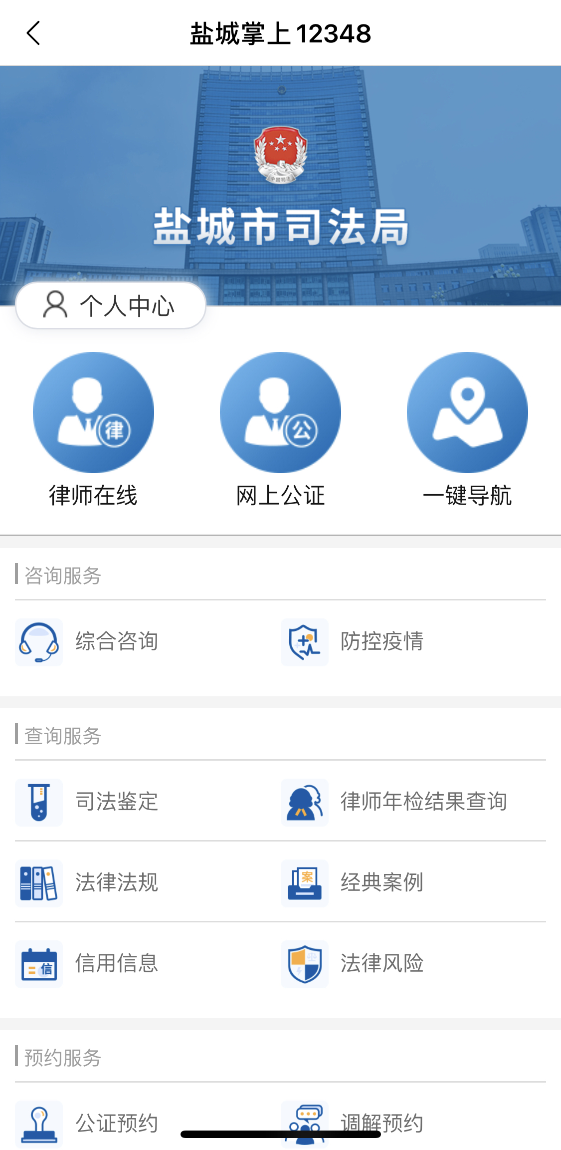 在“我的盐城”APP上入驻12348公共法律服务功能,开辟了公共法律服务服务新渠道,向市民提供更智能、更便捷的移动法律服务。下一步我局将继续做好“我的盐城”公共法律服务功能的完善与维护,利用好“我的盐城”平台推广公共法律服务功能的普及使用,借助公共法律服务大数据的深度应用为群众提供精准、普惠、便捷的公共法律服务。(盐城市司法局 指挥中心)