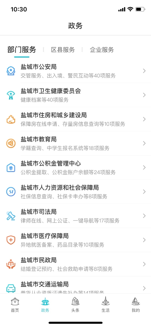 服务功能上线后,注册在“我的盐城”APP中用户可以根据在主界面的目录指引到政务栏目下的部门服务中直接访问盐城市司法局提供的公共法律服务功能。目前提供主要功能如下: