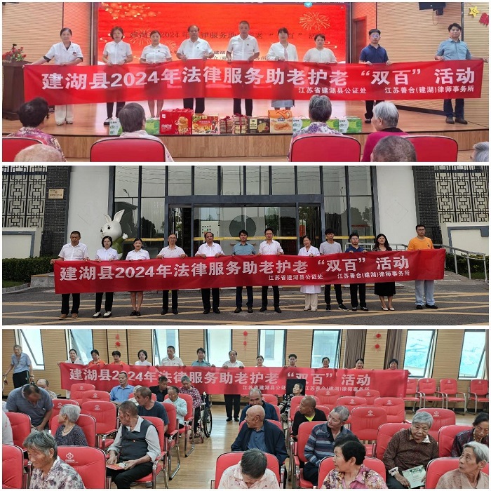 在重阳节来临之际,建湖县公证处联合江苏善合(建湖)律师事务所,在建湖绿康湖垛医养服务有限公司成功举办了2024年法律服务助老护老“双百”活动。