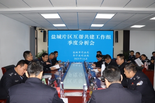 2025年11月11日,在阜宁县司法局召开全市互帮共建工作会议,盐城市司法局副局长、盐城监狱三级高级警长、盐城片区互帮共建工作组组长姜广祝主持会议,阜宁县副县长、公安局局长陆立海,盐城市社区矫正管理局局长张立稳,阜宁县司法局党组书记、局长刘为青及第十二批全体互帮共建民警参加会议。