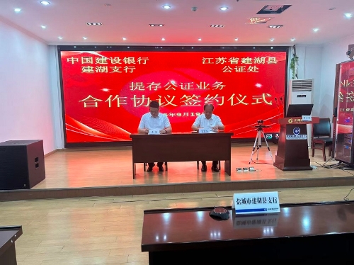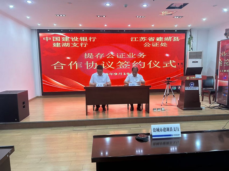 建湖县公证处与中国建设银行建湖支行签订《提存公证业务合作协议》,是建湖县公证处与建湖首家银行签订的提存公证业务合作协议,开创了建湖县金融机构与公证机构提存公证业务合作的先河。协议的签订,对增进双方合作,发挥各自优势,共同支持和服务建湖地区经济社会发展,助力公证业务发展产生积极的推动和促进作用。