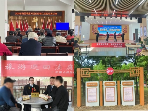 一是嵌入式融合,让法治文化扎根乡土、浸润民心。将法治元素系统化、常态化嵌入地方文化肌理与公共生活空间。聚焦“非遗+法治”融合焕新彩,深挖剪纸、淮剧、面塑等本土非遗资源,孵化《民法典剪纸集》、淮剧微视频《调解三句半》、面塑《范鏓跪别娘亲》等原创作品40余件。聚焦“红色+法治”融合凝内核,依托“铁军驻地”红色资源,打造红色法治教育核心阵地,在陈集镇停翅港村建成新四军法治文化园,通过雕塑、展板再现历史法治实践,累计接待学习6000余人次。聚焦“阵地+法治”融合全覆盖,构建县、镇、村三级法治文化实体网络,建成法治文化广场(公园)19个、法治文化角、法治长廊339个,在农家院落创新绘制“法治故事墙”,推动法治文化阵地从“静态展示”向“动态服务”升级,在桃花源旅游季等活动中嵌入“巡回法庭”“法治小摊”,实现法治文化与文旅场景有机共生,形成“出门见法、抬头学法、休闲议法”的生动局面。